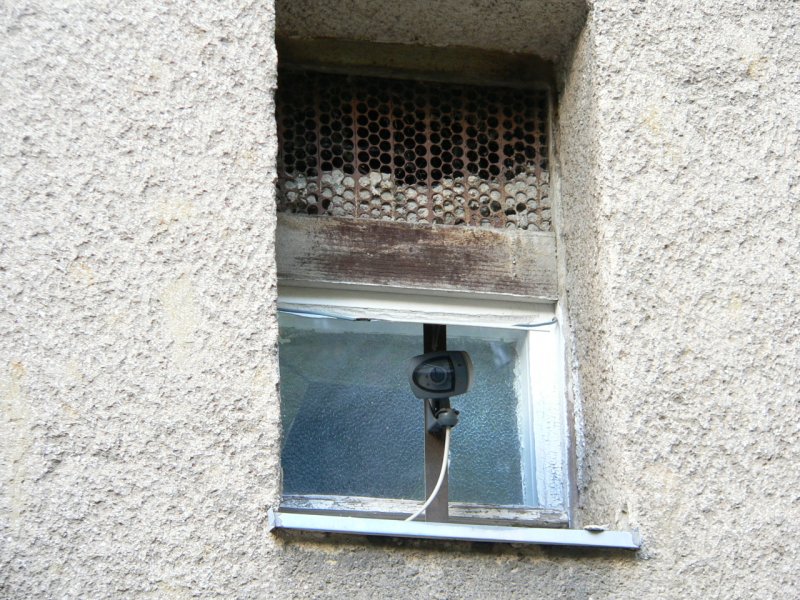Körülbelül 6..8 éve működik így. Éppen nem látszik, de NYÁK lapból van felette kb. 200*200 mm-es tető. Fekete-fehér kompozit video- és hangjelet ad.