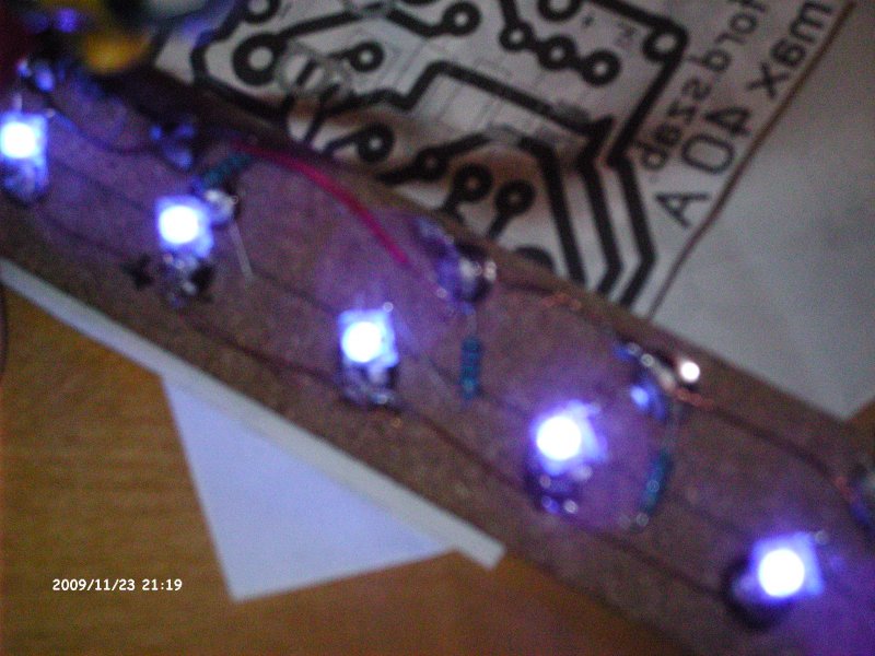 Megépítettem az UV-ledes levilágítómat. Nem volt kedvem nyákot csinálni, meg így olcsóbb is volt úgyhogy "deszkamodellnek" csináltam meg. Egy autó akkuról működtedtetem, de világíthatna erősebben is csak akkut még fel kéne tölteni. Képek: