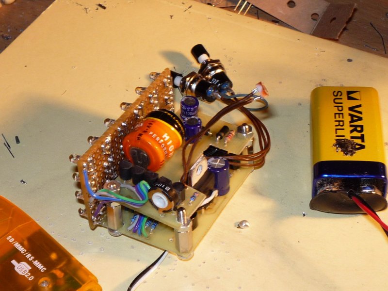 A módosított kapcsolási rajzot ITT találjátok. A forumon található nyáktervet használtam, majd a módosításokat egy külön nyákra csináltam, és összehuzaloztam egymás felett őket, így elég kicsi, kompakt készüléket kaptam. Már csak dobozolni kellene.