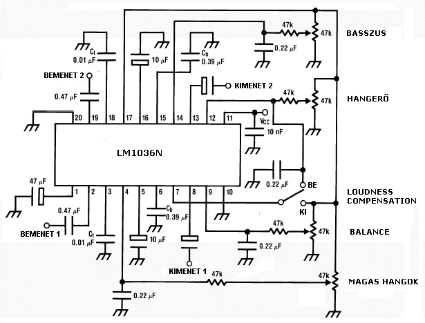 A hangerőt pedig két-két poti végezné.