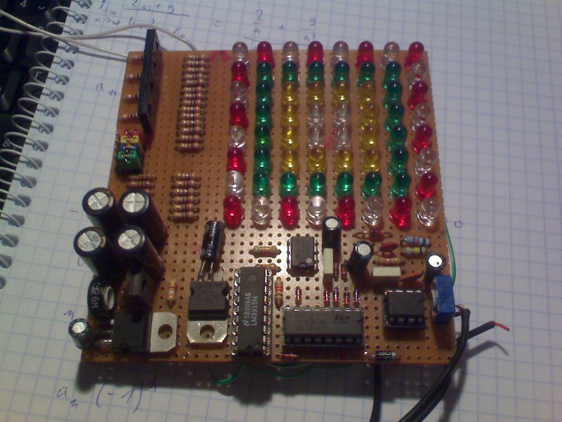 Régebben elkészült a fény-effektem. Négyzet alakban vannak a ledek elhelyezve, zene ütemére váltja a színeket. Kívülről befelé halad, ha beért, akkor kifelé. A középső ledek kékek. Egy 4017-es lépteti a színeket. Van másik üzemmódja is, LM3915 vezérli, ilyenkor sima kivezérlésjelzőként üzemel, szintén négyzet alakban. Sötét szobában tökéletesen elég ennyi led, "meghozza a hangulatot"