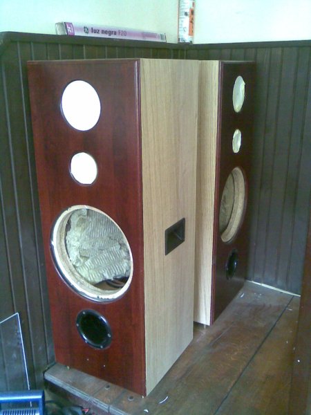 Minek ekkora??8évvel ezelőtt készült el,mikor még ifjonc voltam,és mindig nagyobb kellet... mivel már megvolt felújítottam és így lett a házimozim egy pár tagja,a cinema city elbújhat mellette...a többi hangfal se apróság...Egy előnye van ennek a nagy rendszernek,ha nagyobb hangerőn van van járatva,akkor se megy a terheltsége 35-40% fölé,ergó hosszú élettartalmú,a 70 nm-es előszobát szépen betölti. A magas hangszórót akarom valami komolyabbra cserélni majd ha lesz pénzem rá.30 mm es fal vastagsága van az oldalaknak,elő hátlap 36 mm,előlapon plussz 12 mm-es dísz tölgyfa lap, kúp alakú esztergált réz lábak,tölgyfa furnér borítás.