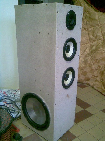 Megkapta végleges formáját a hangfalam,ezt szeretném megosztani veletek,igaz sal szett van benn,de legalább a hangváltó hozzá lett igazítva,így egész halgatható,egy denon 5,1 erősítö hajtja,ez a frontom a házimoziban.