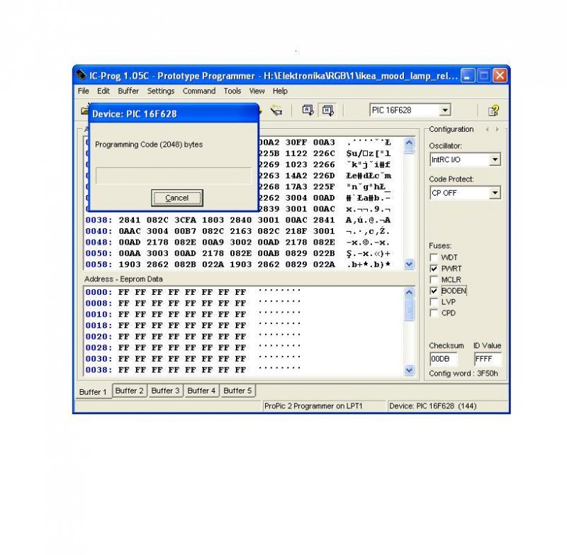 IC-Prog és ProPIC2-ben be lehet állítani.Az álltalad használt programban nem találtam.