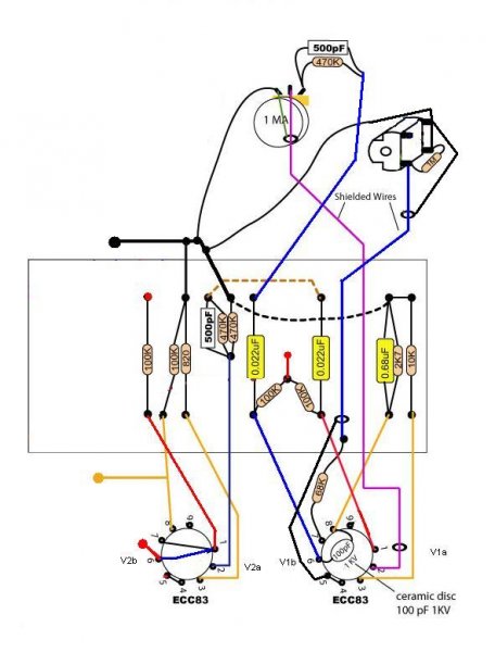 Valaki próbálta már a Marshall JCM-800 előfokának kapcsolását mint torzító? Múltkor egy soldano torzítót csináltam csak keveseltem a torzítását, túl sok közepet emelt, és zajos volt. Most JCM-800 2204-et csinálok, megpróbálom a lehető legjobban leutánozni az elrendezést ami a Marshall fejekben van. Már régóta foglalkoztat ez a csöves torzító építése eddig nem találtam olyat aminek elég lett volna a torzítása. Fontolgatom egy Mesa Dual Rectifier solos csatornájának az után építését, de nem akarok beleugrani mert bonyolultabb és több alkatrész kell hozzá. Esteleg van valakinek tapasztalata ilyen téren?