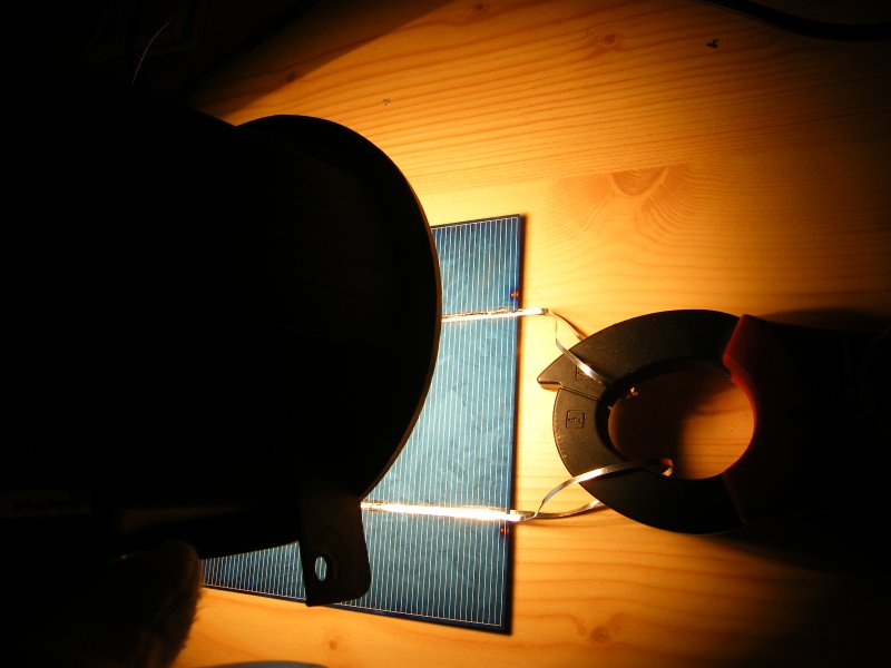 Megjöttek a polikristályos cellák és egy újfajta drót. Picit vékonyabb és keskenyebb mint a korábbi, viszont 1000 szer könnyebb vele dolgozni és gyorsan megy a forrasztás is. Az egyik cellát lepróbáltam egy 500W-os lámpával, kereken 10A-t adott!