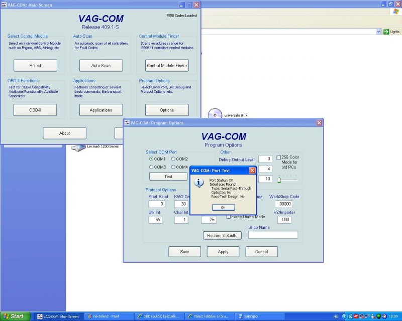 Szeva! Hmmmm! Nem toom milyen USB átalakitod van, de sok reményt ne táplálj! Már nagyon sokan probálkoztak - köztük én is - soros-USB átalakitokkal. Van ami működik, de inkább nem. Én alapból akkor már USB KL interfacest épitenék, vagy vennék! ( 7e Ft EOBD csatiba beleépitve!)