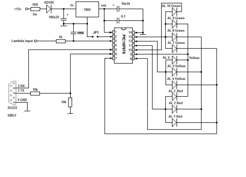 Kezembe akadt egy régi kapcs.rajz. Ez egy lamdaszonda vizsgáló, aminek van egy soros csatija is. (Egyszer építettem egy hasonló kis masinát, csak azon nem volt soros csati.)