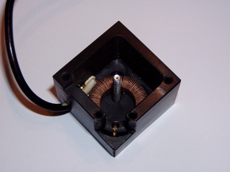 Gondolkodtam a ferrit magos, egyáltalán a magos galvókon, de azt hiszem nem jó megoldás, mert vonzza a mágnest. A légmagosban az a jó, hogy miután odafordította az áramkör a tengelyt ahová kell, onnan nem mozdul el vazérlés nélkül, szemben a magossal. Házilag nagyon nehéz olyan magot kialakítani, ami semleges mágneses vonzást tud biztosítani. Talán ha egy furatot lehetne fúrni egy ferrit tömbbe, amin aztán a tekercstestet is ki kéne köszörülni rendesen. Hát nem tudom, ez nem egyszerű és a hatás sem biztos, hogy teljesül.