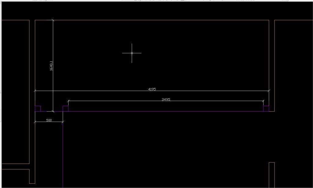 Talán 2 hosszú gerenda lesz, és keresztirányban fog futni a padlólap, ami mondjuk hajópadló, vagy elől lesz 1db hosszú gerenda, és több kicsi bekötő gerendát kap, és akkor hosszába fog futni a hajópadló rajta. Talán attól függ, mit döntök, 3 vagy 2 láb lesz-e. Ha 3 akkor is max annyira lehet bentebb a faltól, mint a rajzon. A lila az elképzelés, a fehér rész meg a falak. |