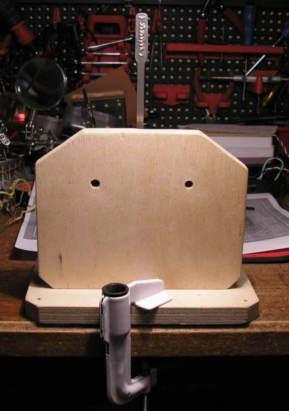 Egy egyszerű szorítóval az asztalhoz rögzited, vagy legalább 3-4kg súlyú talpra szereld. Egy képen látható, hogyan tesztelem én is. (A gyáriban egy nagy "szikladarab"-ot találtam a talpában). Szia.