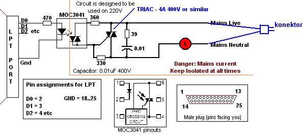Ha jol sejtem, ez a DiscoLitez nevű programhoz mellékelt kapcsolás.Ez tulajdonképpen egy Winamp plugin, ami a zene ütemére adja ki a jeleket az LPT portra.Természetesen mindegyik kimenet konfigurálható, és igy valóban egyedi effekteket lehet létrehozni.Egyébként én is ezt használtam a karácsonyi diszvilágításom vezérlésére.