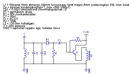 Jó rendben van Te valószínű illeszteni akartad a kis ohmos fejhallgatót a rezgőkörhöz.De ez elé rakjál 1 FE erősítőt jobb lesz az érzékenység is.