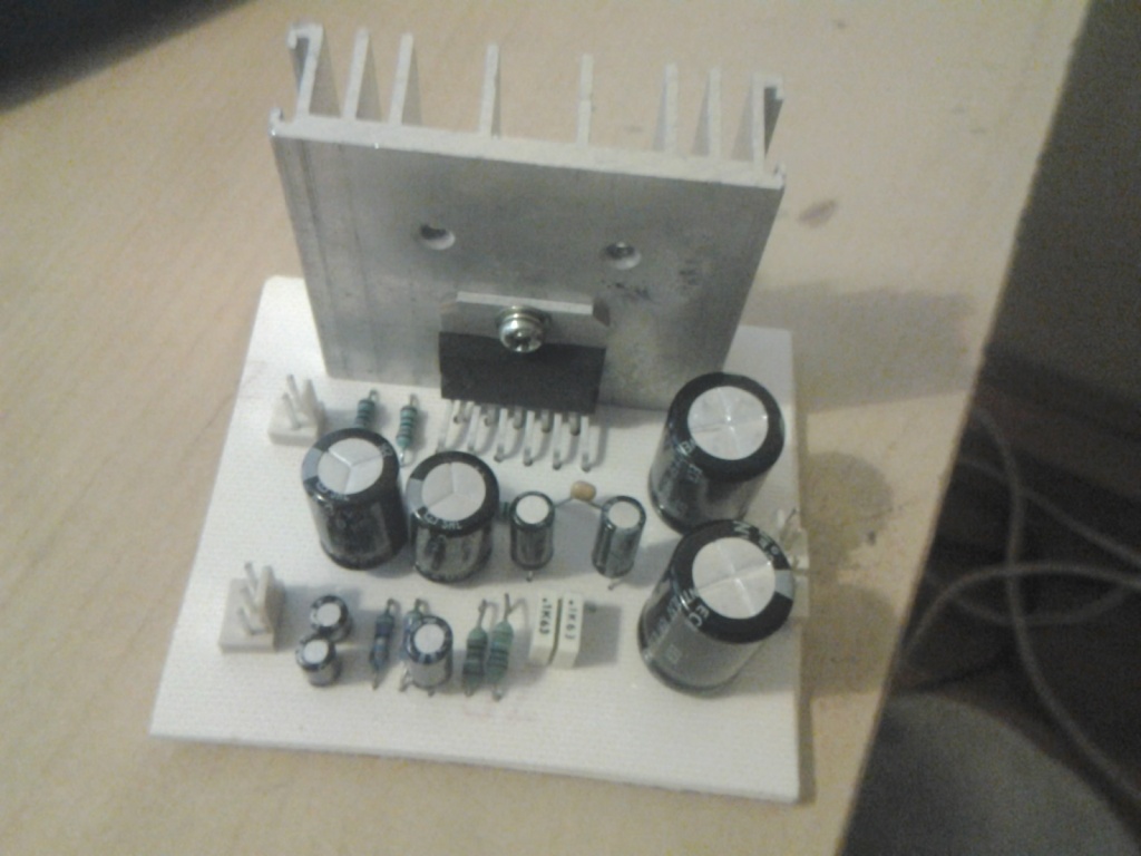 Én is megépítettem a TDA2005-ös végfokot, a sztereó változatot, de egy kisebb csalódás lett az eredmény, az előttem hozzászólókhoz csatlakozva. Pöcc röff indult, viszont az egyik csatorna magasabb jelszint mellett torzabb, mint a másik. Ami persze egy még magasabb jelszint után már teljesen mindegy, mert mindkét csatorna torzít és recseg. Az IC továbbá feltűnően sokat fűt. Szerettem volna egy kis 10-20 W-os erősítőt, ami egy IC-ben leadja a sztereó jelet, de ettől még az is olcsóbb, és kellemesebb, ha két TDA2030-at, vagy társait kötöm egymás mellé. Szóval tanulópénznek megérte, meg egyébként kis jelszinten szépen szólna, de nem nyűgözött le. Ha valakit érdekel a nyákterv azt is fel tudom dobni. Itt a kép a készült munkáról. |