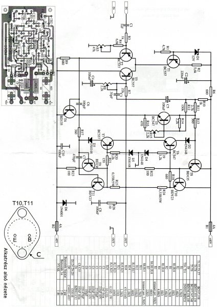 Nemtudom mit gondolkodol azokon a végtranyókon,azokban van a zárlat,lekel kötni és kész,csak a végtranyók okozhatnak olyan zárlatot,mivel azok vannak közvetlen kapcsolatban a tápágakkal,ha a vezérlö tenyók lennének kisülve ami nemgyakori,akkor is károsodtak a végtranyók mivel,hogy maxra kinyittak a tranyók és többet nemzáródtak be.Egyszeü a dolog,erösitöt lekötni,tápforrást mérni,ha minden jó akkor csak a v=egtranyók lehetnek zárlatosak,végtranyókat ki és mérni minden feszt.A kapcsoláshoz kell lennie leirásnak is,mivel ez egy üzletben vásárolható készlet erösitö.Mérni kell a kivezérlö tranzisztorokat is szakadásmérövel.Ha sipol akármék láb közt akkor azt cserélni kell.Ugyanigy kell eljárni a végtranyókkal is,de tegyél biztositékot is mindkét tápágba.Próbára pedig legalább egy 24voltos kis izzöt köss a biztositékok hejére,ha baj van akkor világit,és azt is llátod mejik tápágban van a gubanc.