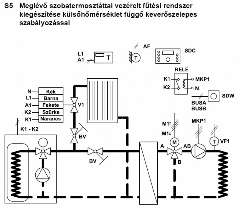 SoSan: 1. Igen az alulméretezett nálam azt jelenti, hogy kisebb mint amekkora kellene! 2. Hogy hogy függ össze a kinti hőmérséklet a visszatérő hőmérsékletével? Ajánlom figyelmedbe Milley Vilmos – Völgyes István: Központi Fűtés 1. – 2 . című szakkönyvét melyben nagyon részletesen le van írva minden! 3. És hogy te nem láttál szekunder oldali szabályozást háromjáratú szeleppel az csak egy dolog ugyan úgy lehet szabályozni a szekunder kört is, mint a primert, és mellesleg van még egy jó tulajdonsága a szekunder oldali szabályozásnak, méghozzá az hogy nem fogja módosítani a hőcserélővel párhuzamba kötött fogyasztók tömegáramát! Egyébként csatoltam egy szekunder oldali kapcsolást!