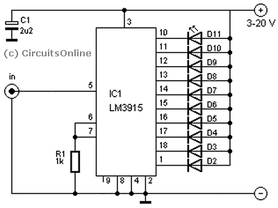 Az áramkör 12V-ról simán működik. LM3915 adatlapjában meg fogod találni, hogy mi a minimum, és a maximum. A LED-eknek add ugyanazt a tápot, mint az LM-nek. A többi jó. Üdv!