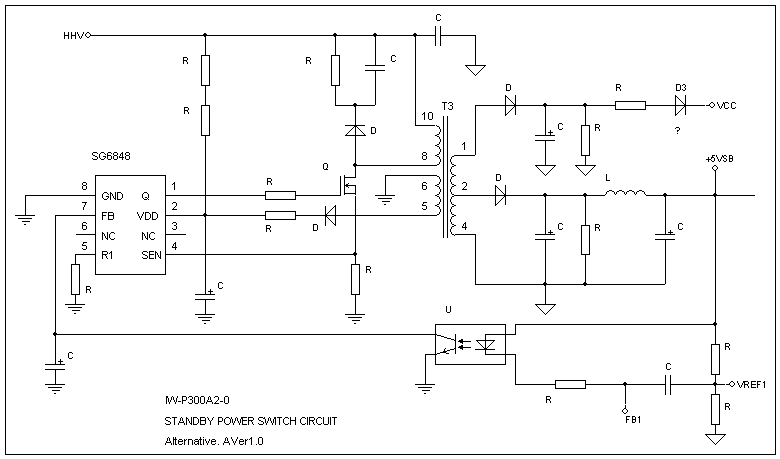 "viszacsatolási pontot" = Az a pont, ahol az egyenáramú szekunderfesz a primer oldali vezérléshez kapcsolódik. Ez egy vezélőchip képében is feltünhet...