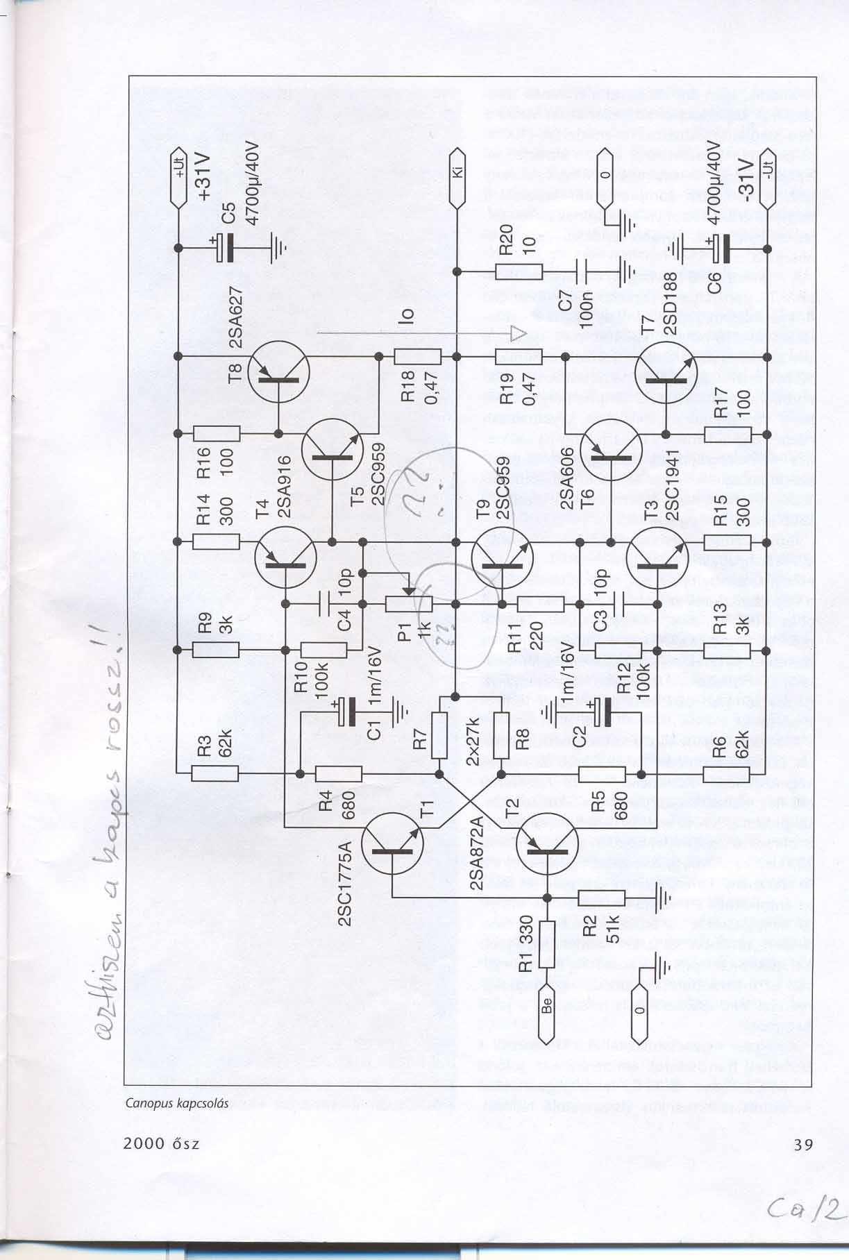 higgyétek már el nekem. SZKOP NÉLKÜL NEM LEHET ERÖSITÖT GYÁRTANI! hiába állitod be az egyenfeszeket. a gerjedések álltalában 200 és 500 khz közé szoktak esni, és visszacsatolással nem lehet csillapitani a fázisfordulás miatt. valamikor ez csak néhán mV. de ezen a frekin még ez is halálos lehet rá. vagy legalább is piszkosul izzad. ezt nem lehet távgyogyitással kezelni.