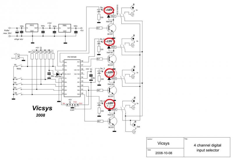 Szeretnék egy ilyen bemenetválasztót épiteni, de relékkel. PIC nélkül! Relékkel se baj. Az erősítőbe a bemenetválasztók ilyen IC-kből áll: TC9164, TC9162, és egy M37470M4-189SP. Az utólsó IC-be mennek a nyomógombok. Azt nagyon megköszönném ha valaki egy kapcsolást összedobna, nagyon megköszönném!!