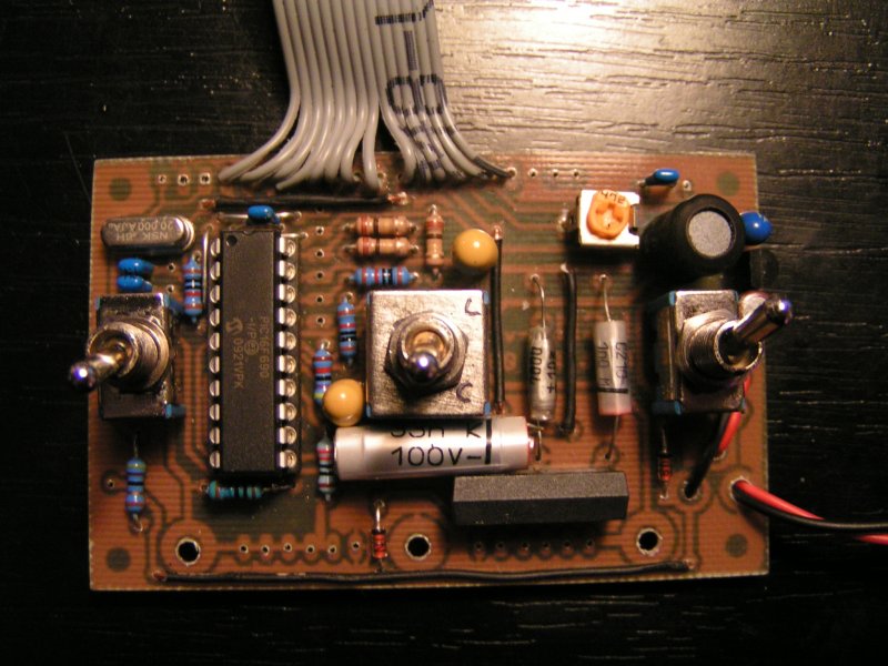 Mérd meg a PIC 19. lábán, vagy az R8 ellenállás valamelyik lábán a feszültséget a kalibráló gomb mind két állásában. A kép felbontása nem tökéletes, de mint ha a két lába között valami lenne gyantamaradvány vagy ón?