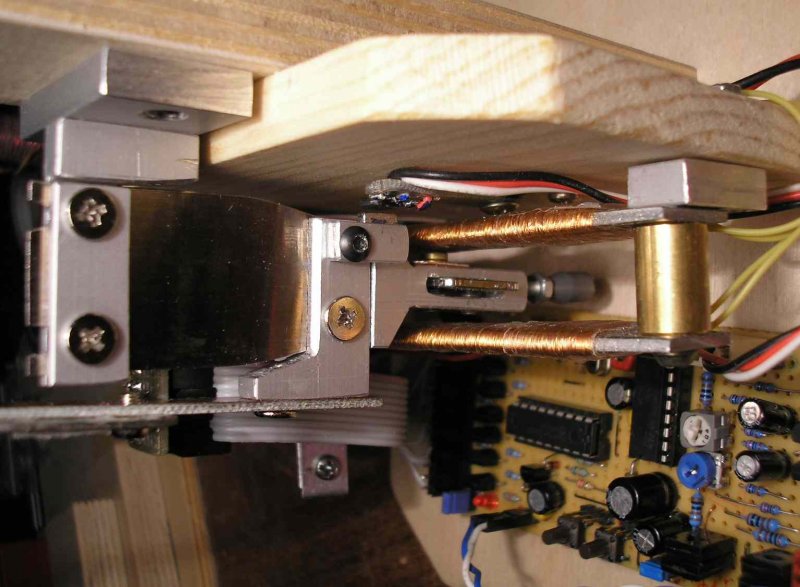 Ha ez kész lesz hidd el,hogy nem igen kell karbantartani csak néha esetleg leportalanítani de még arra is akad orvosság! Ez a szalagkábel szerintem nagyon sokat fog bírni mivel egyenletesen hajlik és a foglalatnál a visszahajtás kegyetlen erős tartást is ad! Valójában csak a kábel hajlik csak megfelelő hosszt kell majd beállítani! A kitérést és a frekvenciát szinte nem is befolyásolja! Következő lépés a mechanika kiegyesúlyozása estleges átalakítása (nem kizárt egy teljesen új modell de mit lehet ezen kell kikísérletezni,hogy jó e mivel nem vagyok sajna fizikus Ha találok egy jobb megoldást nem számít amit megcsináltam megy a süllyesztőbe készítek egy újat nálam ez csak szabadidő kérdése más nem igen tud befolyásolni ha van megfelelő idő! (a nyákterveket volt,hogy 18 órát csináltam csak a biológiai szükségletek idejére álltam le pár percet) van ki pihent agyúnak nevez de szerinetem ez nem türelem (az nekem is elfogy néha) hanem kitartás! Ha megunom és nincs hozzá kedvem elmegyek a haverokkal iszunk pár sört és felfrissül az agyam mert alapban mindig jár valamin Utóirat: Türelem a hülye emberekhez kell kik megkeresnek egy javítási melóval és ha elmegyek megcsinálni megmagyarázza ,hogy is van és miért úgy mer ő nem úgy meg minden!