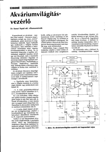 A kapcsolás úgy működik, hogy érzékeli a kinti fényt és amikor sötétedik akkor lekapcsolja a neonokat de az izzók még világítanak. Ahogy sötétedik oda kint úgy halványítja az izzókat teljesen amíg el nem alszik és odakint sötét van. Ez azért kell, hogy a halakat ne érje stressz hatás amikor világosból hirtelen sötét lesz.Van ilyen kapcsolási rajzom ha kell csak írj.Én nagyon régen megépítettem már ezt és tökéletesen működött.