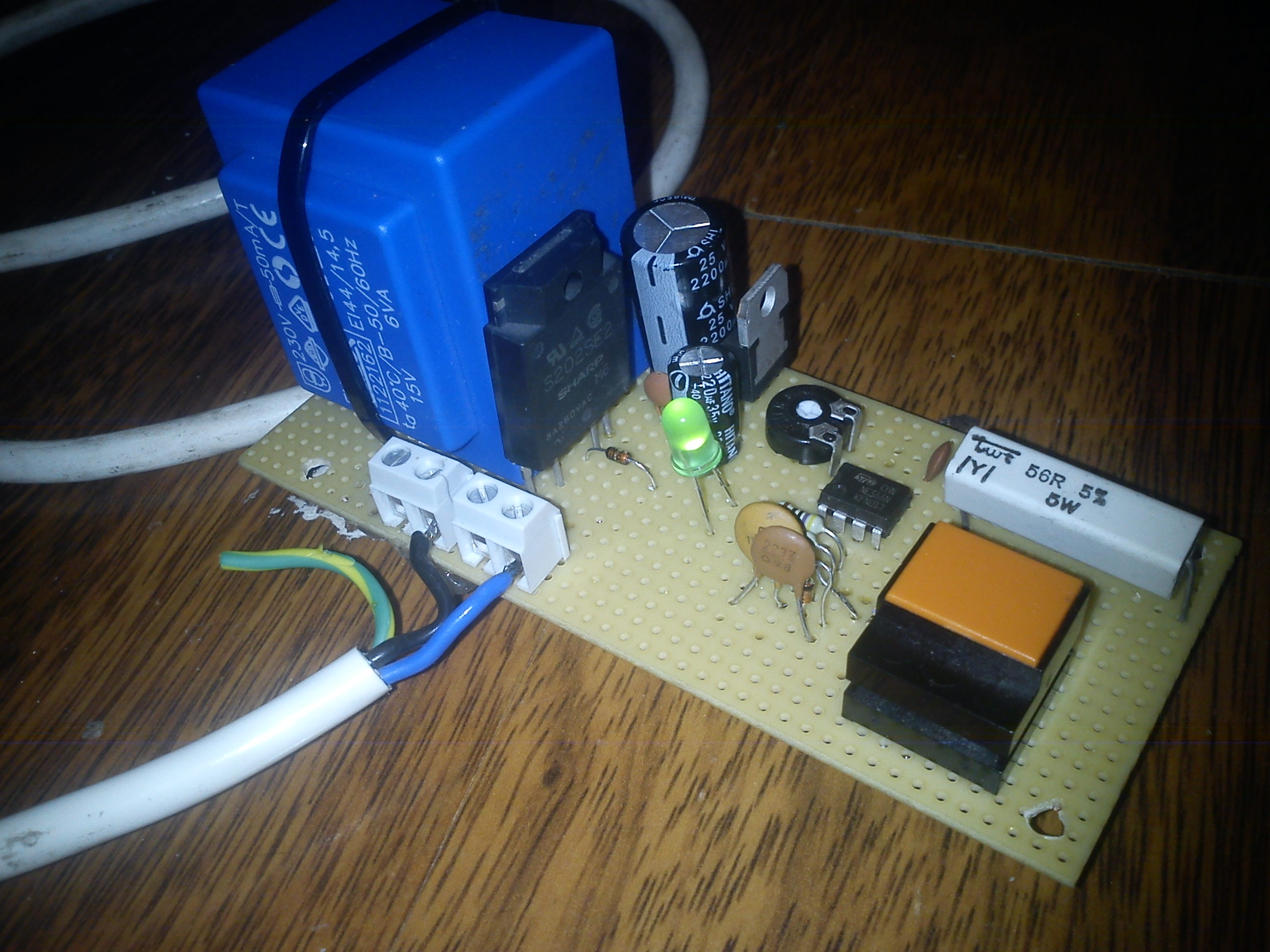 Az első változat az többször lett módosítva, és már szétbontottam. A második, ami jelenleg is működik, azt mellékeltem. Ez most nem ráz, de néha újraindul. Mellékeltem még egy nullátmeneti kapcsolót, amit a relé helyre szeretnék beépíteni, és szerintem így sem fog rázni a kapcsolóknál az optocsatoló miatt.