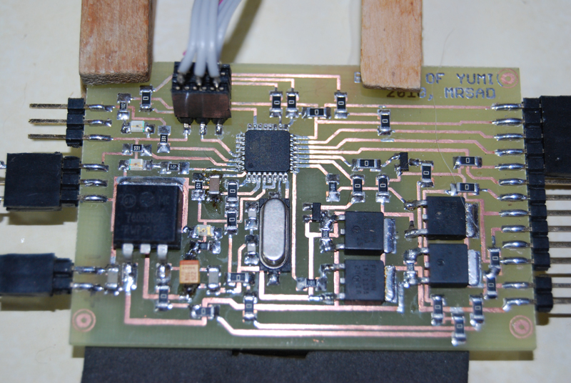Matattam még egy kicsit (ha már le volt fújva a nyák)... Egy korábbi vasalós technikával készült egyoldalas smd-nyákot reprodukáltam. Az eredmény a képeken (a beültetett példány a vasalásos technika gyermeke).