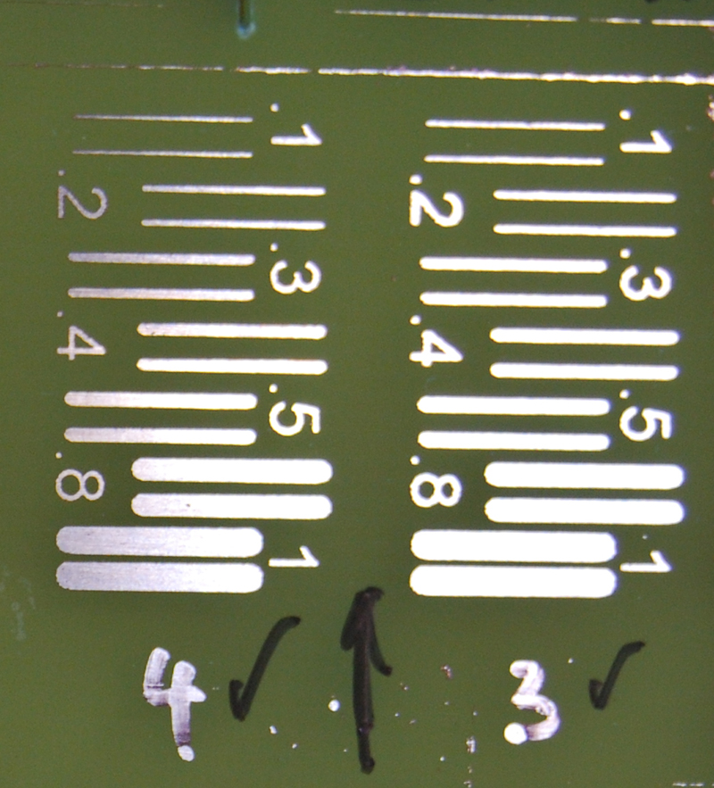 Apró, szabad szemmel nem is látható tűhegynyi lyukak előfordulnak, de ez ide belefér. A képeken látható, hogy a 0.1mm-es vonal teljesen tökéletes, éles kontúrja van és szakadásmentes.
