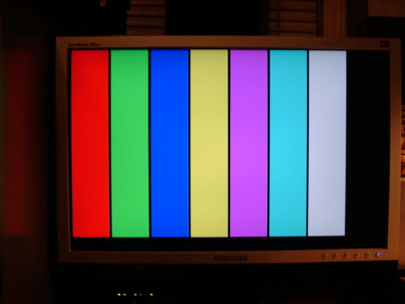 Még tavaly építettem egy mikrokontrolleres karakter generátort hercules monitorhoz. Gondoltam felkéne használni az elkészült program vázát, hogy VGA monitort hajtsak meg vele. A VGA időzítéseket áttanulmányozva nem tünt lehetetlennek a feladat. Megírtam egy egyszerű kódot, hogy kipróbáljam működőképes lehet-e a dolog. Az eredményt a képeken láthatjátok. Mikrokontroller: ATtiny2313 32Mhz -en hajtva. Képernyő felbontás: 640*480 60Hz. Igaz, ez a kód még nem sok mindenre használható. De ebből kiindulva már (ha időm engedi) tudok csinálni hasznos programot is.
