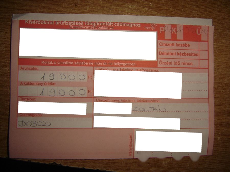 Jött egy csomagom 19000Ft-ba került és csak ennyit is kért tőlem a postás. Holott ott volt az 1980Ft díj is.
