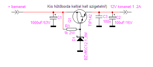 Alkatrészekhez linkek: Zéner Darlington tranyó 1K 2W (Ez csak egy példa, máshol is vásárolhatsz természetesen! Mondjuk itt a HE-n!) Ha netán nem jönne ki 14V-nál a 12V terhelésen, akkor az 1K-s ellenállást kell csökkenteni 560ohm-ra. Idézet: „Ha netán nem jönne ki 14V-nál a 12V terhelésen, akkor az 1K-s ellenállást kell csökkenteni 560ohm-ra.” Ennek viszont az a veszélye, hogy túlmelegszik a Zener, ha tényleg van néha 46V. Reméljük elég lesz az 1k!
