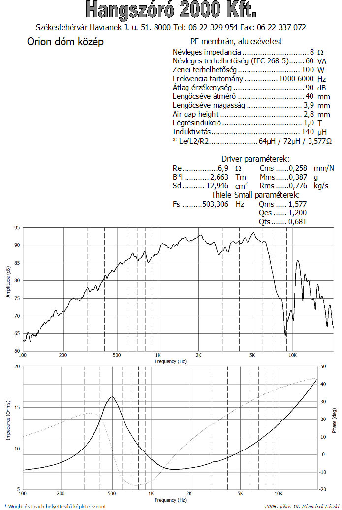 Birtokomban van egy Dibeisi C8004 típusú hangszóró. Egy a gondom vele, hogy még a thiele-small paramétereket sem találom a neten. Próbáltam mérni, de eléggé érdekes dolgok jöttek ki. Esetleg valakinek nincs ezzel a hangszóróval tapasztalata? Mostani felállás szerint autó mélynyomóba menne, ha lehet akkor band-pass ládába.