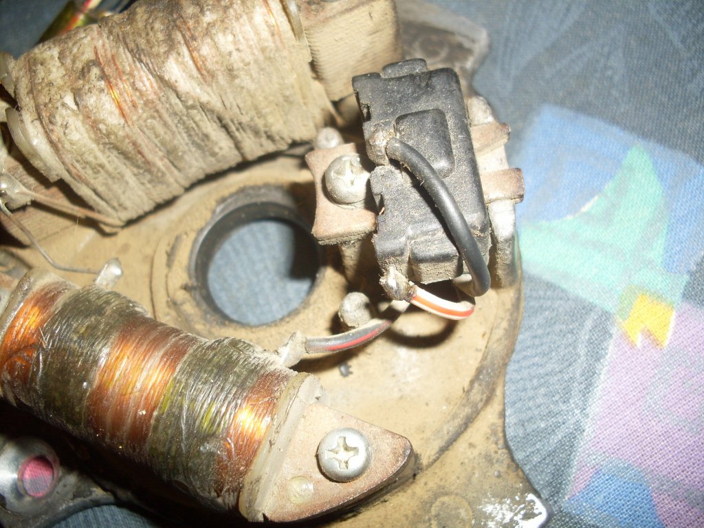 (vezetéke: gyújtástrafóról fekete piros csíkkal; jeladóról fekete és még fehér piros csíkkal; másik kettő ami a nagy tekercsről jön le sárga pírscsík és egy fehér ).