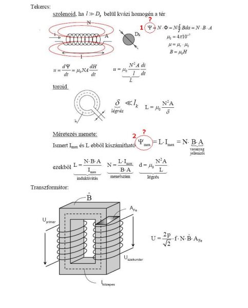 A csatolt képen látható a tekercs és méretezése. Azt szeretném kérni, hogy valaki magyarázza el nekem a megjelölt 1-es és 2-es képleteket. Köszönet érte, ha valaki megteszi!
