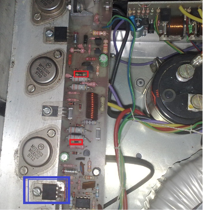 Van a sulinknak egy CASTONE CPA500-as erősítője. Már nagyon régóta nem megy az egyik(A) csatorna csak a B. Suli ugye nem javítattja, merthogy nincs pénz. Ma szétszedtem megnéztem, hátha tudok rajta segíteni. Ami fogadott. Két ellenállás teljesen szenesre volt égve. Kicsérlni nem nagy cucc. Csak gondlom nem csakúgy töknrement. Mivel két csatornás ezért a másik oldalon ugyanazok ottvannak tehát látom mire cseréljem. Mi lehet ennek az oka?