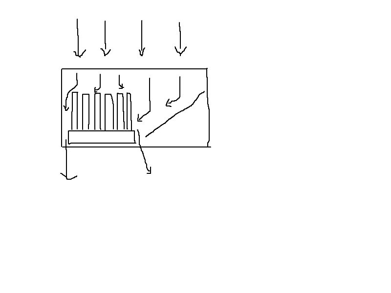 A kép alapján én arra gondoltam, hogy a belépő oldal felőli pálcikákat még szépen eléri ugyan a levegő, de azokon megtörik, és a mögöttük lévőknek éppen csak a csúcsát súrolja. Olyan ez, mint amikor az erdőszélen fúj a szél, az erdőben meg semmi.