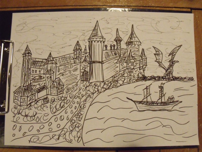 Nálunk az asszony még csak most jön haza, így mi még nem nőnapoztunk. A Gergőkével rajzoltunk (kéz vezet kezet módon) a lányoknak virágokat. Aztán apa, rajzolj még valamit! Úgyhogy lett még egy kis házacska is. Aztán apa meg összecsapott egy kis kastélyt is anyának.