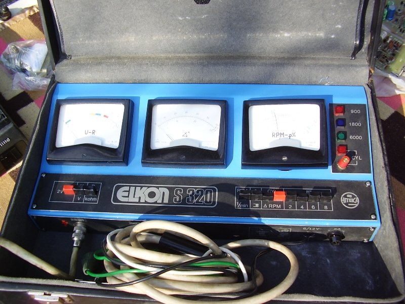 Nemrég sikerült szert tennem egy HITEKA Elkon S-320 autós mérőbőröndre. Szeretném használni, néha jól jönne az autómhoz. A gond csak az, hogy nincs meg a használati útmutatója, kapcsolási rajza. Ha van valakinek vagy esetleg digitális formában, akkor kérem szóljon. Az alkatrészkatalógusa és a mérés után hivatalosan kiállítható mérőlapjai azért megvannak. Van rajta stroboszkóp is. Néhány plusz panelt is rejtett a bőrönd zsebe. A fordulatszám/zárásszög műszere már nem működik, de ezt egy másik kisebb FFV (Fővárosi Finommechanikai Vállalat) autós műszerrel tudom mérni.
