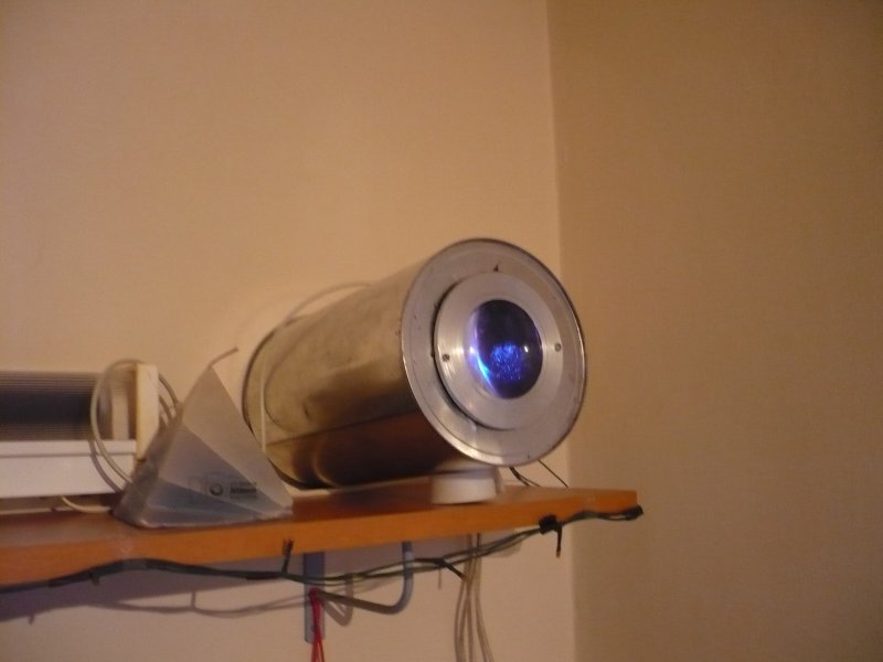 A doboz festékes dobozból van. A lencse prolyektoros tv ből való