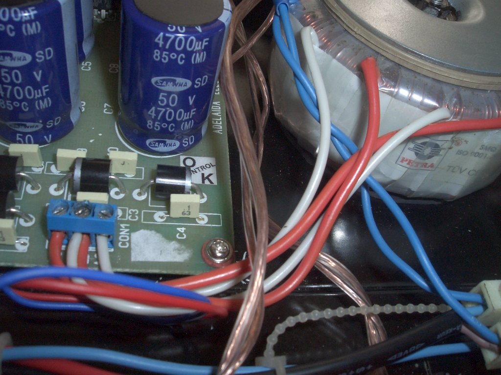 Valami nem oké azzal a toroiddal sem. A fehér vezeték a szekunder oldalon miért lóg?Nekem úgy tűnik ez egy olyan trafó aminek két szekunder tekercse van , nem olyan ami középcsapolásos.Rendesen megvan a tápfesz a tápegység kimenetén? A két tekercset sorosan kellene kötni a közepe a test. Ha kell lerajzolom ,mert fontos melyik a tekercs kezdete és vége. A másik dolog az lenne , ha később úgyis bővítenéd akkor , érdemes csillagpontosra kialakítanod a földelést. A toroid meg a táp között van egy furat , oda be lehet tenni egy csavart , és minden test-et onnét kötni. A bemenetek , a kimenetek , az erősítő panelja, a potméter , A hűtőborda ,és maga a doboz is. Így minimálisra lehet csökkenteni a brummot