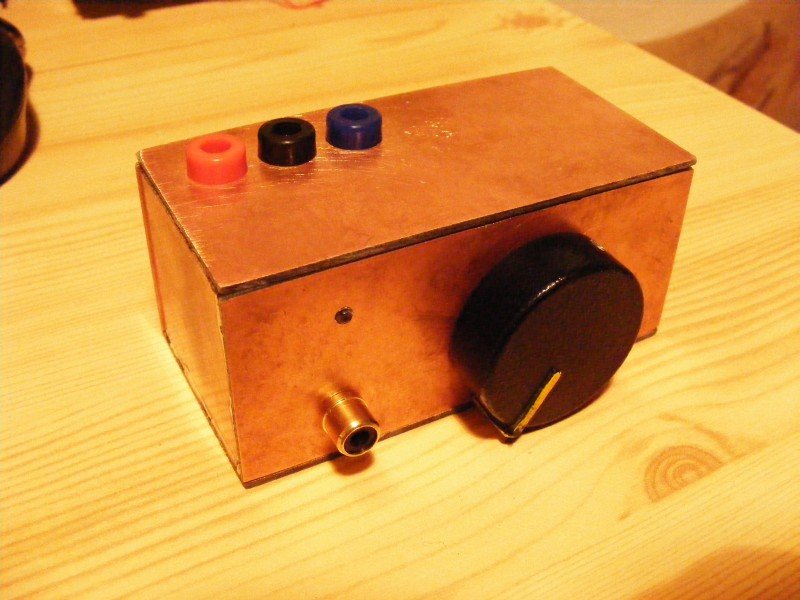 Elkészült a 4040-es IC köré épülő frekvenciaosztóm. A multiméterem csak 300kHz-ig mér, így viszont 8MHz-ig tudok frekvenciát mérni. Az előlapon található RCA csatlakozó hangszóró kimenet.