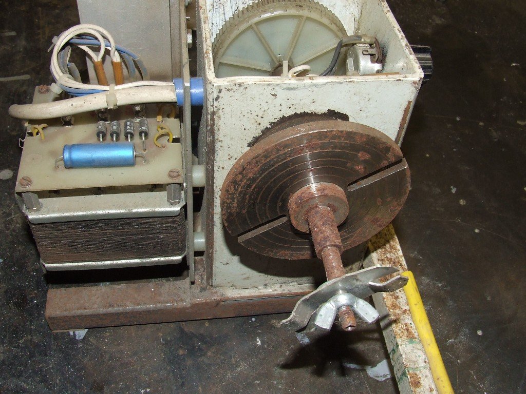 1. A "nagy" tekercselő a régebbi, azt még az első munkahelyemen csináltam, ott marogattam a fogaskerekek egész garmadáját, amire az előtoló műben bőven szükség is van. Ez a gép rendelkezik egy olyan "vezérorsóval", ami oda-vissza képes egészen vékony vezetékeket is (meg persze vastagot is) pontosan egymás mellé tekercselni. továbbá számos fix fordulatszáma van, ami részben az ékszíjtárcsák, részben egy duplázó fogaskerékhajtás biztosít. Nagyon erős a motorja, kimondottan nagy trafók is gyárthatók vele (kb. 1kW-ig). Több évig tekertem vele trafókat másodállásban, amit jól mutat a fenéklemezen lévő tetemes lakkréteg, ami mind a tekercsekből csepegett oda. A "kis" gép későbbi (de már az is van vagy 15 éves). Ez kisebb trafókhoz való, ahol egyáltalán nem kell a meneteket egymás mellé tekerni. Ennek a fordulata fokozatmentesen állítható egy potival. Továbbá mivel egy komplett RIM NTM305-ös labortáp szolgálja ki a motort (az állórészt fixen telibe gerjesztem, és csak a forgórész feszültségét szabályozom, ami nagyon finom, és folyamatosan egyenletes erősséget biztosít), és ennek van áramkorlátja, ezért a motor erejét is be lehet állítani. Ez nem tűnhet fontosnak, de nagyon is az. Aki már próbált néhány század mm vastag huzallal tekercselni, az megtapasztalhatta milyen könnyen szakadnak ezek a vezetékek. A jó erőbeállítás ezt szinte kizárja. A másikhoz képest ez egy nagy fordulatra is képes eszköz, akár 1500-at is tud fordulni. Sok ezer menetszámnál ez is elég nagy hangsúlyt tud kapni. FONTOS! Senki ne merítsen ötleteket a gépek biztonságtechnikáját illetően, mert számos fogyatékossággal bírnak ezen a téren, viszont remekül lehet velük tekercselni.