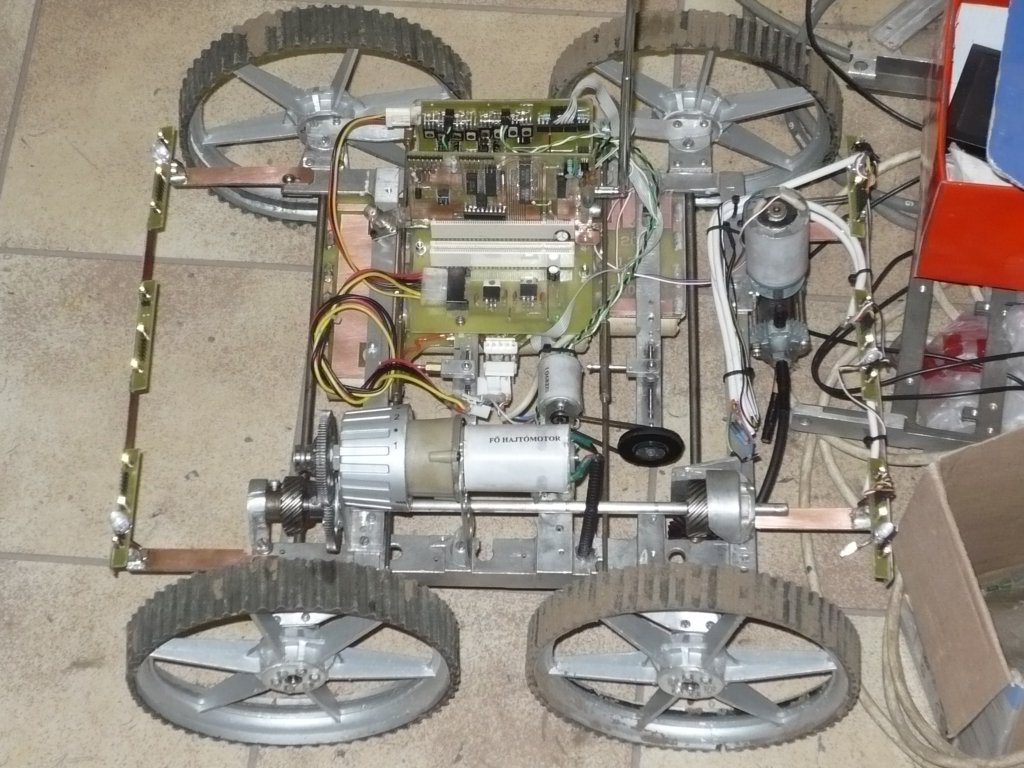 Ezen már átrágtam magam, és csak hogy mindenki értse hogy mire szeretném használni. Néhány kép, amelyeken egy korábbi robotom látható. Na ilyesmi alkatrészek elkészítéséhez kell. Van egy speckó asztali fúróm, amit átalakítottam hogy felsőmaróként is működjön. Na ez is az esztergám egyik része lesz hogy igazán univezzális legyen. Íme néhány kép csakhogy céltárgyak méreteivel mindenki tisztában legyen.