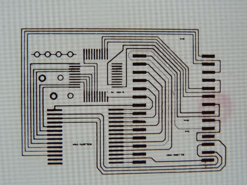 Dörzsis szivacs, alkoholos lemosás, vaskloridos előmarás, laminálás négyszer átküldve, sósavval papírt lemartam, plusz hidrogénperoxid és marás. Ecsettel nem mertem piszkálni mert a festék nem ég rá teljesen, ha nekiesek könnyen lejön, pedig hp nyomtatóval nyomom műnyomóra, sajnos utántöltött tonerrel, és 160 fokon laminálom. Ez a maximum amit enged beállítani. Az érzékelő közvetlenül a hengeren mér gyárilag, még nem piszkáltam meg. Valahogy el kéne érnem hogy 20 fokkal kevesebbet mutasson a vezérlő felé, akkor biztos jó lesz a hőfoka. Két vezeték megy az érzékelőtől, lehet hogy megpróbálok beiktatni egy ellenállást. A lábhiba már a papír leáztatása után megvolt.