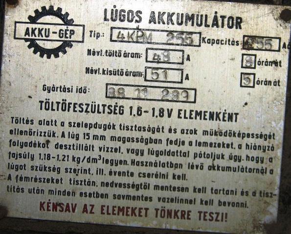 Honnan vettem?Az akkulátorok kezelése és karbantartása,Léder József 1968.Valamikor tankönyvem volt.Ami nekünk hátrány cseptöltés nem használható.Túltöltés lugosnál még ajánlott is ,minden 10. töltésnél.Hátrány nálunk még:az olomakksihoz képest hatásfoka gyengébb.(ahhoz hogy kivehes 1KW ahhoz 1,5KW-t kell tölteni).A kisülés közben az első nap rengtegett veszit,rövidzárási árama töredéke,(ezért az inverter hamar lekapcsol)minuszukban még rosszabb tárolóképesség.