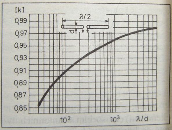 Koaxoknál láttam táblázatot ott már találkoztam a témával, sőt mellékeltem egy képet ahol a [k]rövidülési tényező alakulását láthatjuk a [lambda/d]hullámhossz/átmérő függvényében félhullámú dipol esetén (ezekkel én is foglalkoztam anno)