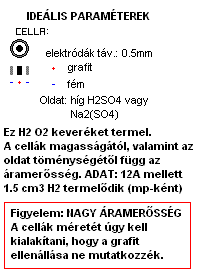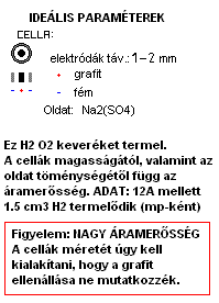 Kérdésem: Mekkora a cella feszúltsége? Mekkora áramsűrűség kell ill. engedhető meg max. Milyen fém lehet alkalmas elektródának? ( Ha kérhetem a platinán kívül