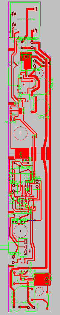 A rajzot felteszem, elvileg hibátlan és működik(jelenleg nagy része ki is van próbálva, csak néhány kondit, kapcsolót és potit tettem még hozzá a béta verzióhoz. Bocsánat-bocsánat, a pwm kapcsolásról írtam, kicsit elbeszéltünk egymás mellett, és fogalomzavarban voltam. 555 IC-nél lábkompatibilitáis gondok vannak a National oldalán néztem a datasheetet az 555 IC-ről, és ha nézem a nyákrajzodat, akkor a jó lábkiosztás szerint a bal fölső sarokban van az 1-es láb! Így viszont pl a 2-es és a 6-os láb nincs is bekötve...stb... A rajzod szerint viszont a jobb fölső sarokban van az IC 1-es lába.